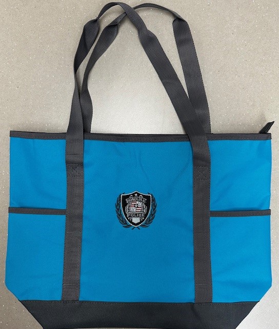 HPD ON THE GO BADGE WREATH TOTE AQUA 300D POLYESTER CANVAS